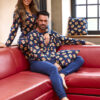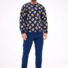 Piżama męska z kolekcji Merry Christmas to komfortowy i stylowy zestaw na zimowe, świąteczne wieczory. Wykonana z wysokiej jakości bawełny, zapewnia przyjemne uczucie dotyku i wygodę przez całą noc. Koszulka z długim rękawem ozdobiona jest świątecznym printem w misie, wprowadzając radosny, bożonarodzeniowy nastrój. Długie, jednolite spodnie posiadają wygodną gumkę w pasie, gwarantującą idealne dopasowanie i swobodę ruchów. Mankiety koszulki, dół bluzy oraz nogawki spodni wykończone są elastycznym ściągaczem, co zapewnia komfort i zapobiega podciąganiu się materiału. Całość pakowana jest w ozdobne pudełko, dzięki czemu piżama stanowi również świetny pomysł na prezent świąteczny.