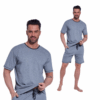 Stylowa i wygodna – ta piżama męska to idealny wybór dla mężczyzn, którzy cenią klasyczne wzornictwo i wysoką jakość materiałów. Koszulka z długim rękawem w ponadczasowe paski została uszyta z miękkiej dzianiny o przyjemnej fakturze. Okrągły dekolt podkreśla prosty, codzienny charakter zestawu, a dopracowany krój sprawia, że całość świetnie układa się na sylwetce.