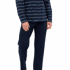 Piżama męska wykonana z wysokiej jakości bawełny to połączenie komfortu i klasycznego designu. Koszulka w paski z długim rękawem oraz dekoltem w szpic prezentuje się elegancko i zapewnia pełną swobodę ruchów. Długie, jednolite spodnie dopełniają zestaw, oferując wygodę i komfort noszenia. W pasie zastosowano elastyczną gumkę, która dopasowuje się do sylwetki, nie uciskając i zapewniając komfort przez całą noc. Cały komplet został starannie zapakowany w pudełko, co sprawia, że piżama świetnie nadaje się również na prezent. Miękkie, przewiewne materiały gwarantują wygodę, komfortowy sen i relaks w domowym zaciszu, łącząc funkcjonalność z ponadczasowym stylem.