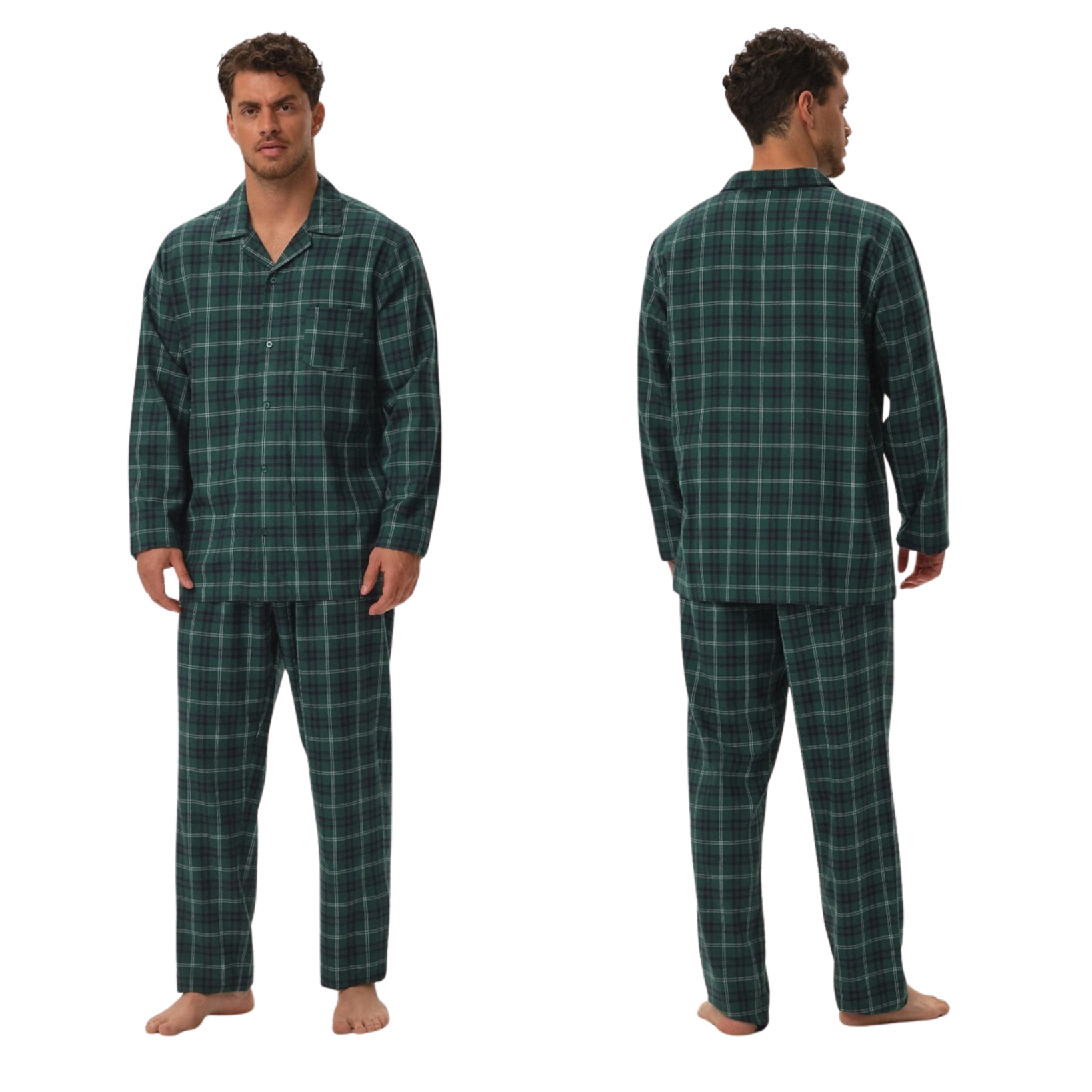 Piżama męska Henderson 41922 Hire to połączenie ponadczasowego fasonu i maksymalnej wygody. Górna część piżamy, zapinana na guziki, została wyposażona w kołnierzyk oraz kieszonkę, co nadaje jej eleganckiego, ale jednocześnie swobodnego wyglądu. Ten model idealnie sprawdzi się u mężczyzn, którzy cenią sobie klasyczny design i komfort podczas snu.
