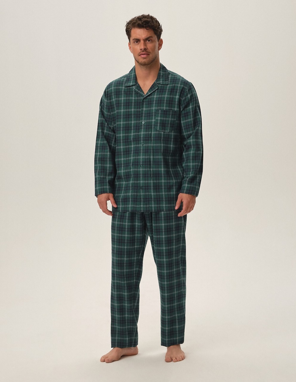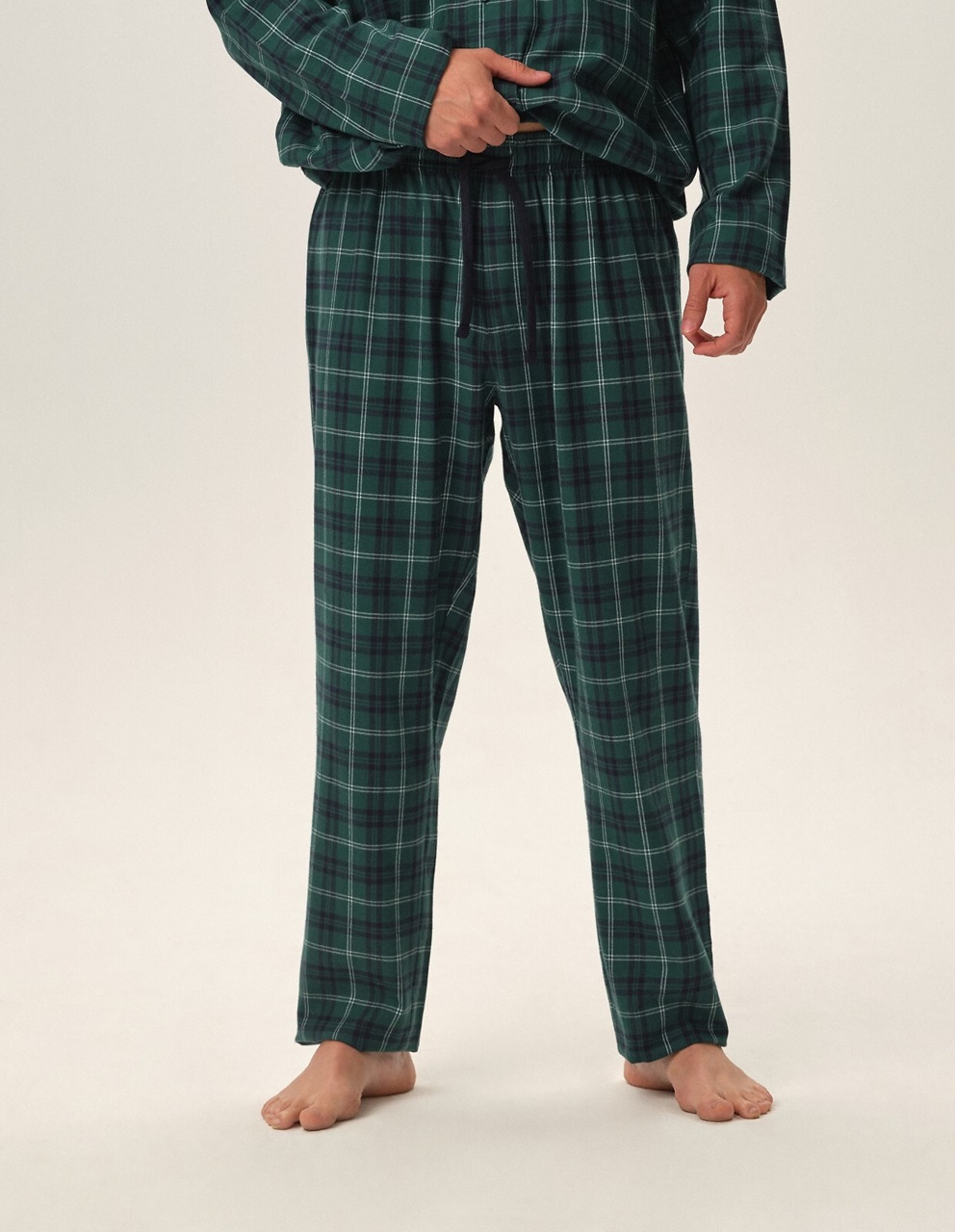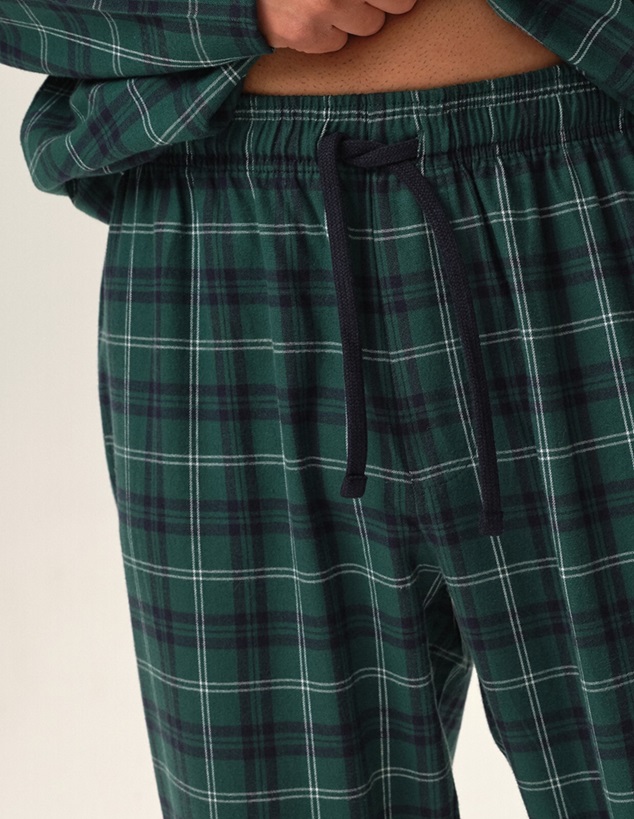 Spodnie piżamy mają luźny krój, który gwarantuje swobodę ruchów, co jest kluczowe dla pełnego relaksu podczas nocy. Elastyczna gumka w pasie zapewnia wygodne dopasowanie, dzięki czemu nie musisz martwić się o ucisk. Piżama Hire jest nie tylko stylowa, ale również wyjątkowo praktyczna – jej klasyczny, zielony kolor w kratkę sprawia, że jest uniwersalna i pasuje na każdą okazję.