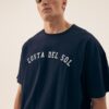 Bawełniana piżama męska. Koszulka z krótkim rękawem, okrągłym dekoltem i nadrukiem z przodu. Spodenki luźne, jednolite do kolan, na nogawce mały nadruk. Elastyczna gumka w pasie. Skład: 100% bawełna.