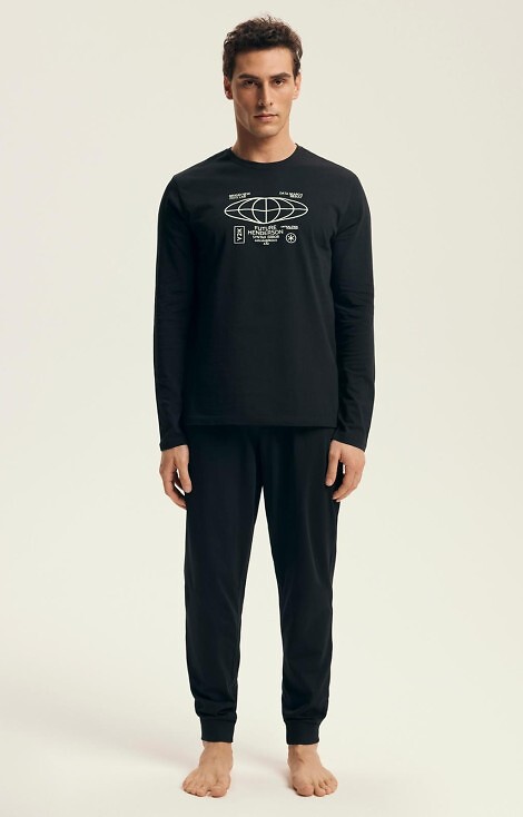 Piżama męska Henderson Core 43469 Loger czarna długa bawełna