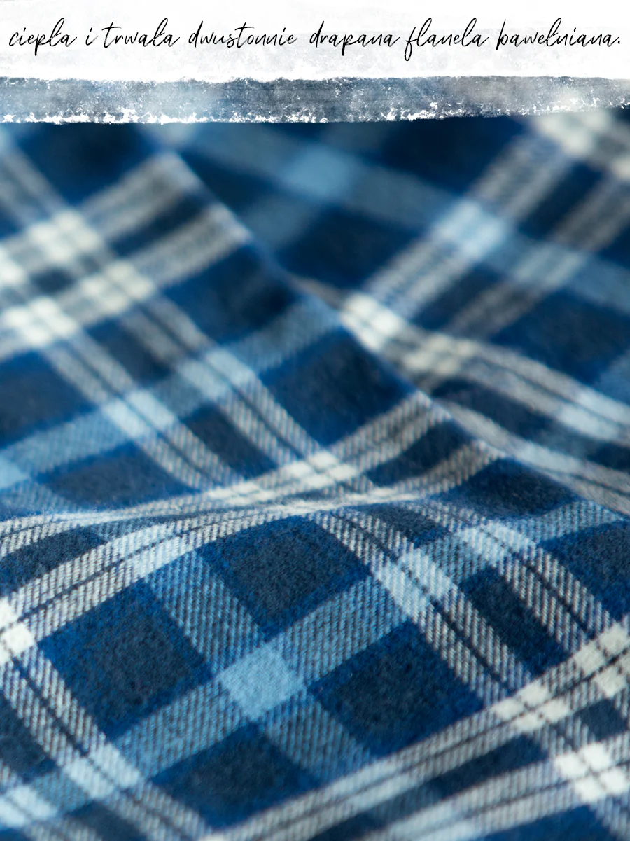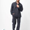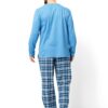 Ciepła piżama męska łącząca miękką bawełnianą bluzę i flanelowe spodnie, wykonana w 100% z wysokiej jakości bawełny, zapewniającej komfort, miękkość i przewiewność. Bluza z okrągłym dekoltem wykończonym dzianiną rib gwarantuje wygodę i subtelny, klasyczny wygląd. Spodnie o prostym kroju nogawek wyposażone w miękką gumę w pasie idealnie dopasowują się do sylwetki, zapewniając pełną swobodę ruchów. Dodatkowo z przodu znajduje się praktyczny rozporek na guzik, zwiększający funkcjonalność piżamy. Całość tworzy wygodny i trwały zestaw do snu i relaksu. Produkt jest łatwy w pielęgnacji, zachowuje kształt i kolory nawet po wielu praniach. Doskonały wybór dla mężczyzn ceniących komfort i klasyczny styl.