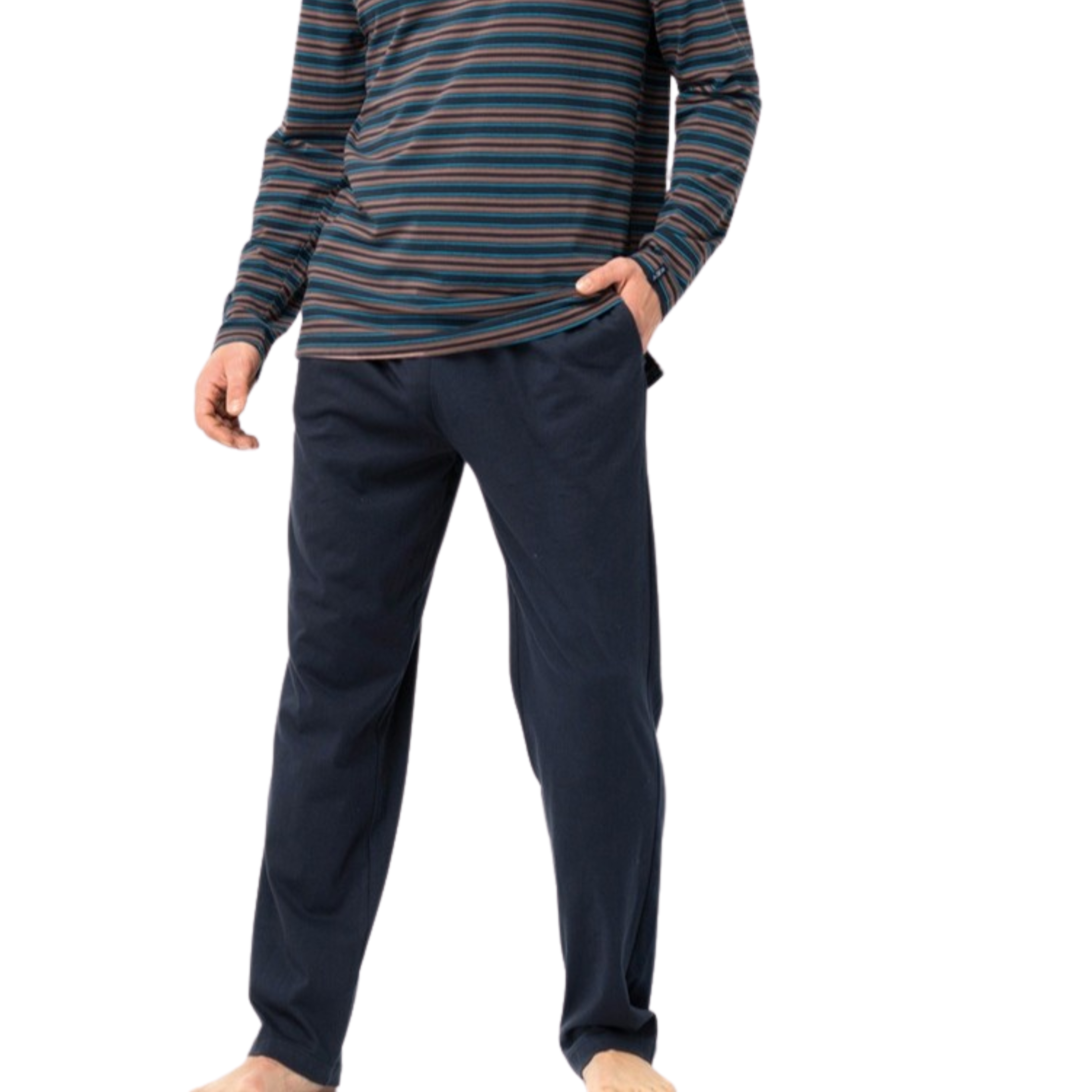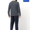 Stylowa i wygodna piżama męska z długim rękawem, wykonana z wysokiej jakości bawełny, zapewniającej komfort i przewiewność podczas snu. Bluzka w drobne paski nadaje całości eleganckiego i nowoczesnego charakteru, a dodatek elastanu sprawia, że materiał jest elastyczny i idealnie dopasowuje się do sylwetki, nie krępując ruchów. Spodnie są proste, gładkie i wykonane w 100% z miękkiej bawełny, co gwarantuje wygodę przez całą noc. Piżama jest trwała, łatwa w pielęgnacji i zachowuje swój kształt oraz kolory nawet po wielu praniach. Doskonały wybór dla mężczyzn ceniących komfort, styl i jakość w codziennym użytkowaniu.