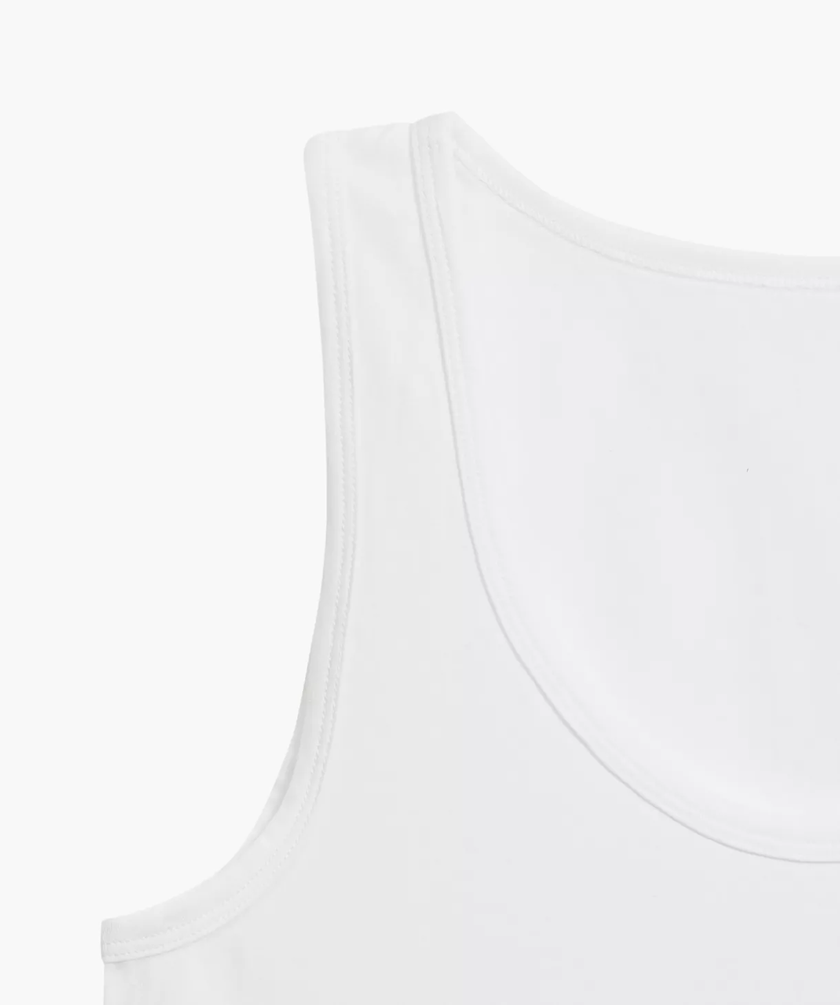 Musisz go mieć w swojej szafie! Biały podkoszulek na szerokich ramiączkach to doskonała baza dla każdej stylizacji.