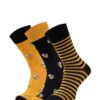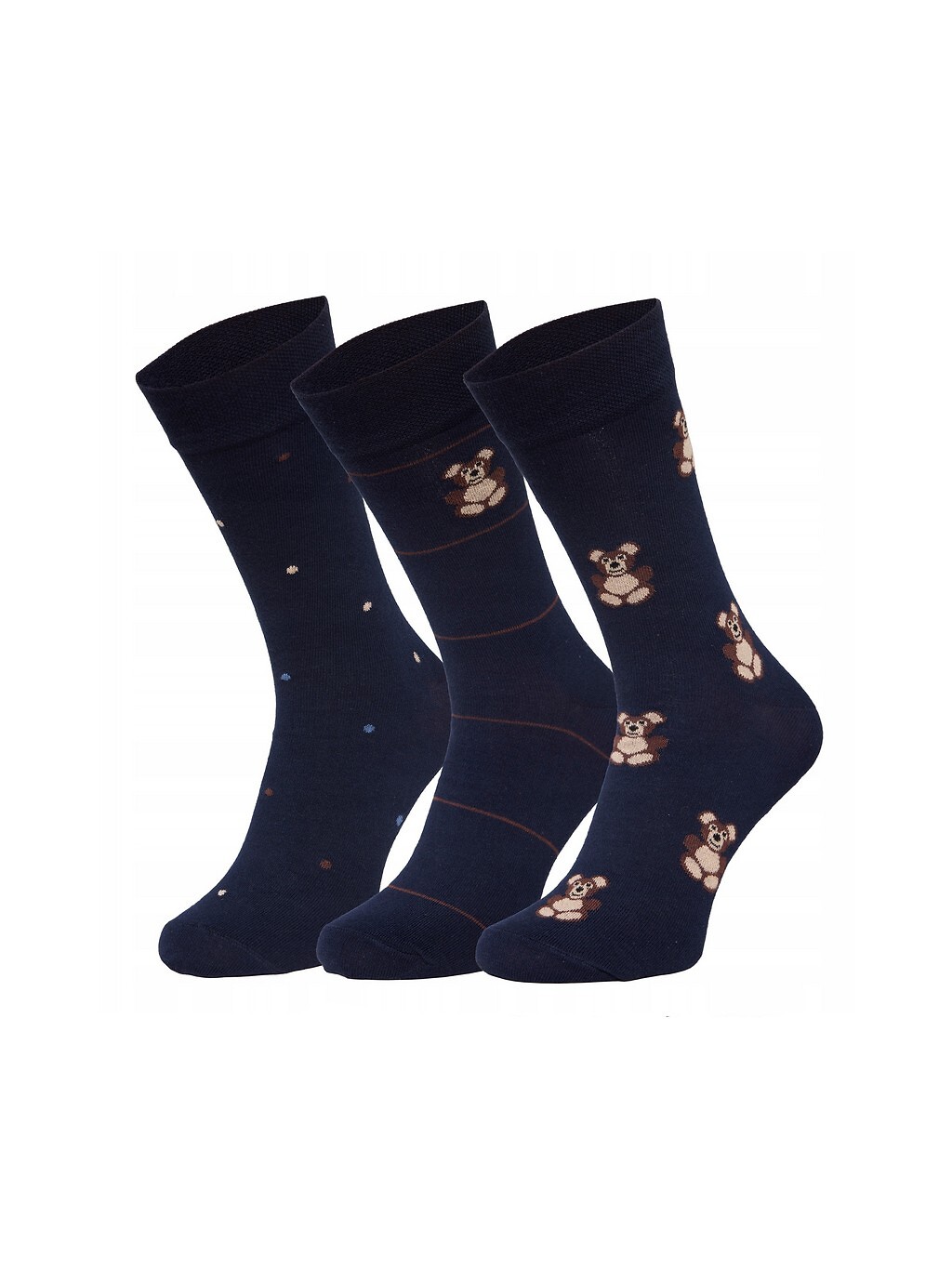 Bawełniane skarpety męskie to propozycja, która łączy komfort, wysoką jakość wykonania i modny design. Wykonane z przewiewnej, miękkiej bawełny z dodatkiem poliamidu i elastanu, doskonale dopasowują się do stopy i są wyjątkowo trwałe. Płaskie szwy minimalizują ryzyko otarć, a nieuciskający ściągacz zapewnia wygodę noszenia przez cały dzień. Wyprofilowana pięta gwarantuje idealne ułożenie i zapobiega zsuwaniu się skarpet, co podnosi komfort użytkowania. Wzorzyste wykończenie nadaje im nowoczesnego i stylowego charakteru, dzięki czemu świetnie sprawdzają się zarówno na co dzień, jak i jako ciekawy akcent w eleganckiej stylizacji. Pakowane w eleganckie pudełko po 3 pary w różnych wzorach, są również świetnym pomysłem na praktyczny prezent.