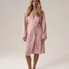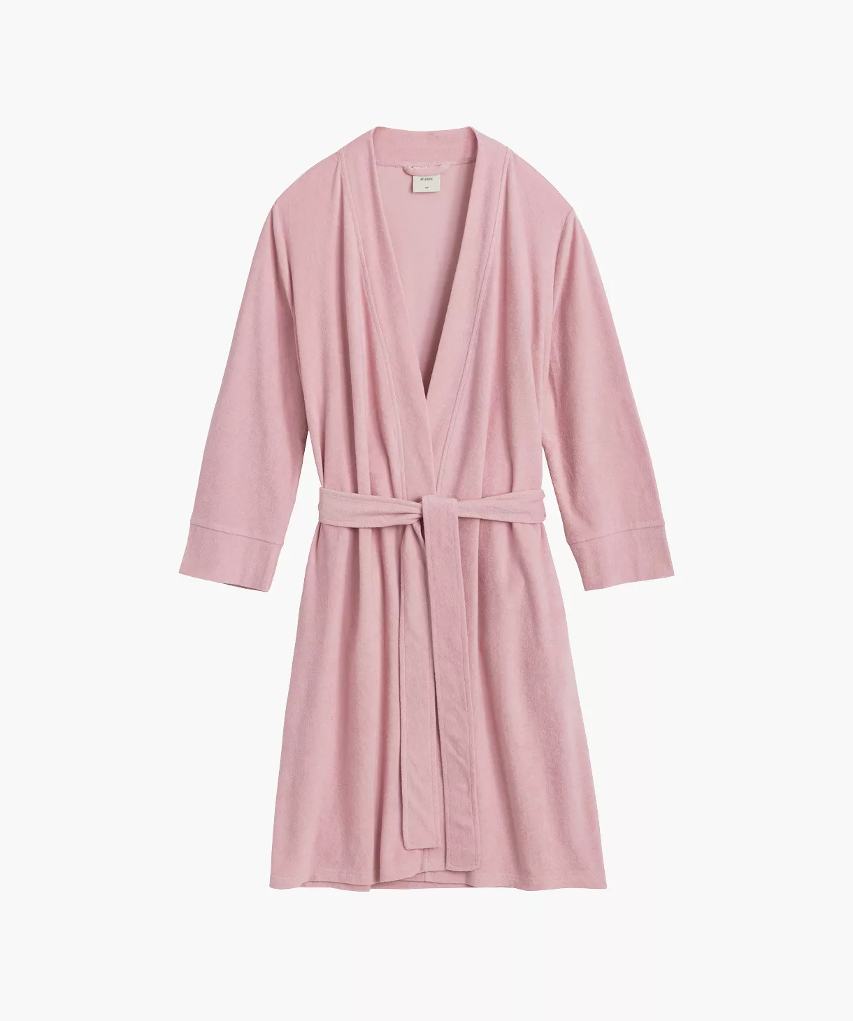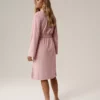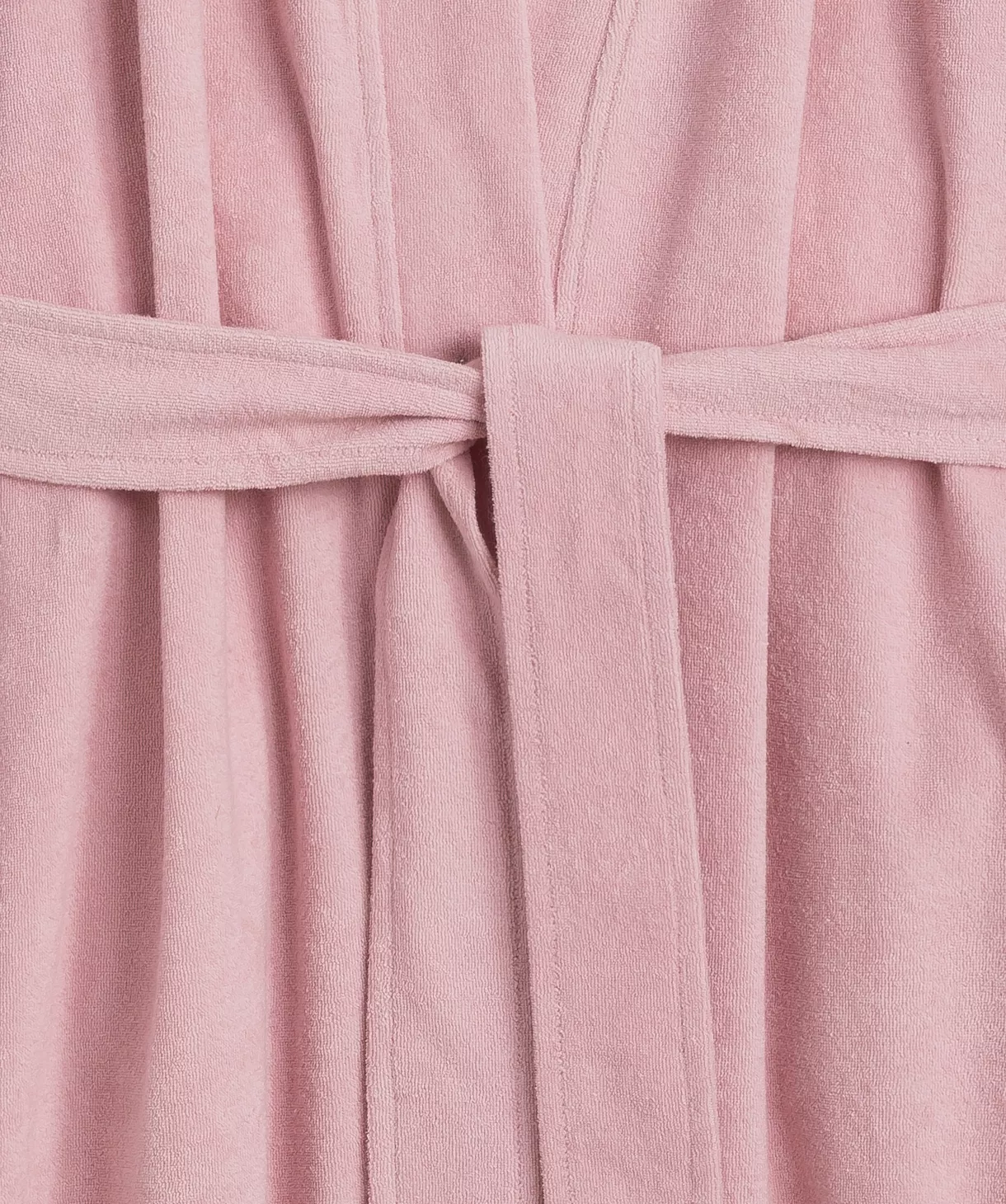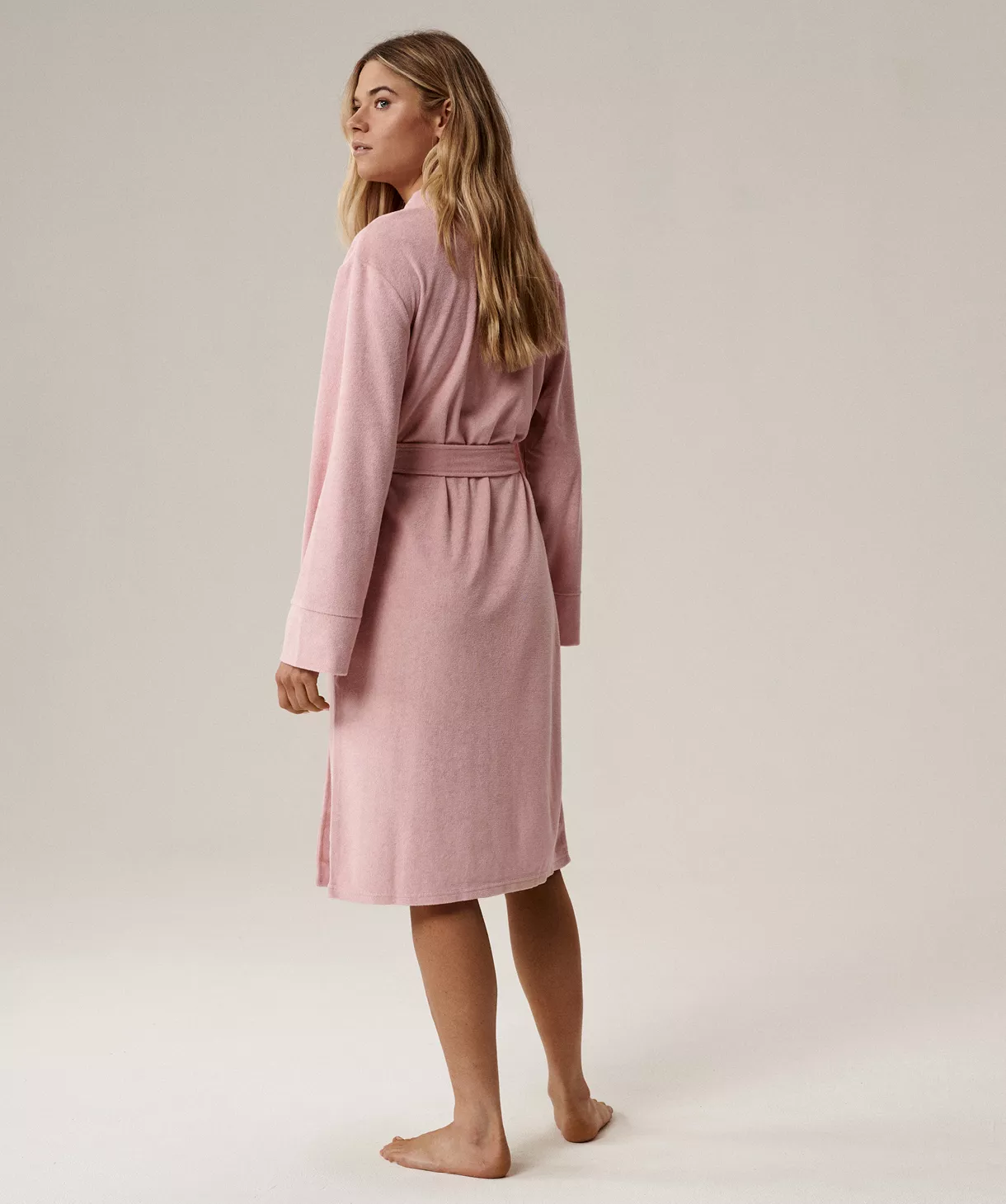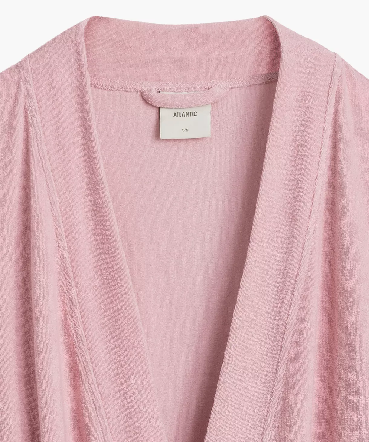 Damski szlafrok ATLANTIC w odcieniu pudrowego różu to klasyk w ponadczasowym wydaniu. Szlafrok wykonany jest z dzianiny french terry – przyjemnej w dotyku, przepuszczającej powietrze bawełny z delikatną pętelką od wewnątrz, połączonej z poliestrem. To materiał, który daje poczucie naturalnej miękkości i komfortu przez cały dzień.