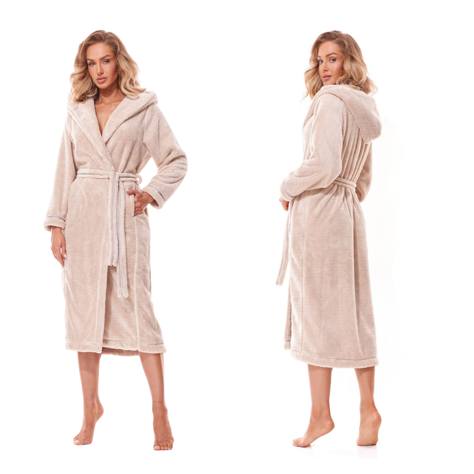 Marzysz o ciepłym, miękkim otuleniu po długim dniu? Szlafrok damski L&L 2322 Soft Angora to idealny wybór! Długi krój z kapturem sprawia, że poczujesz się, jakbyś nosiła drugą skórę – ciepłą, delikatną i niebywale przyjemną. A to wszystko z myślą o Twoim komforcie!