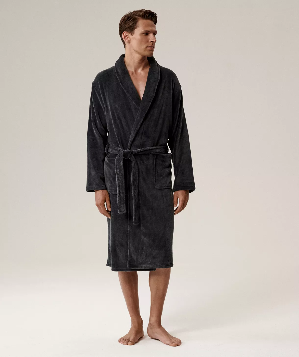 Luźny fason, szalowy kołnierz, głębokie kieszenie i długi pasek to wygoda w najlepszym stylu – na co dzień, po kąpieli, podczas leniwych poranków i spokojnych wieczorów.