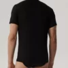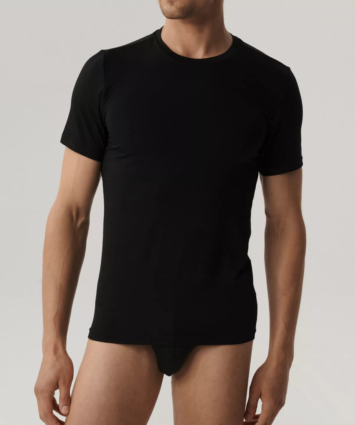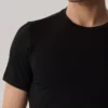 T-shirt męski w kolorze czarnym ma krótkie rękawy oraz okrągłe wycięcie blisko szyi. Koszulka, która zapewni ci maksymalny poziom wygody i swobodę ruchów wykonana jest z dzianiny będącej połączeniem delikatnego i jedwabistego bambusa oraz rozciągliwego elastanu. Bambus o wyjątkowych właściwościach antybakteryjnych i termoregulacyjnych w chłodne dni ociepla, a w upały daje uczucie chłodu. Jest wytrzymały i odporny na mechacenie.